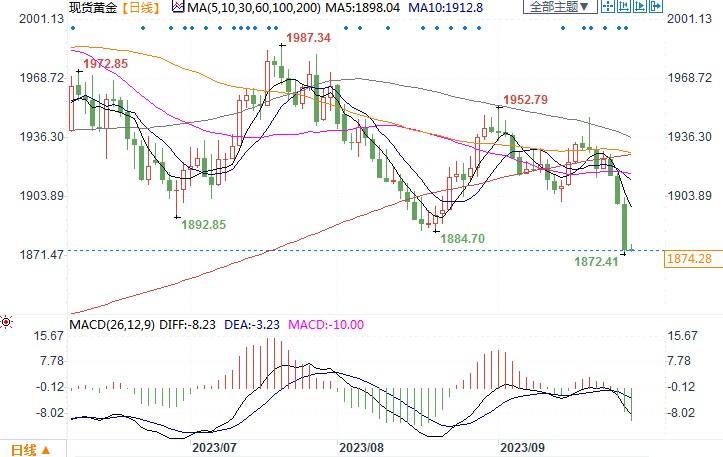 一些分析师认为,黄金的看跌势头可能推低现货市场金价回到2023年低点每盎司1810美元。